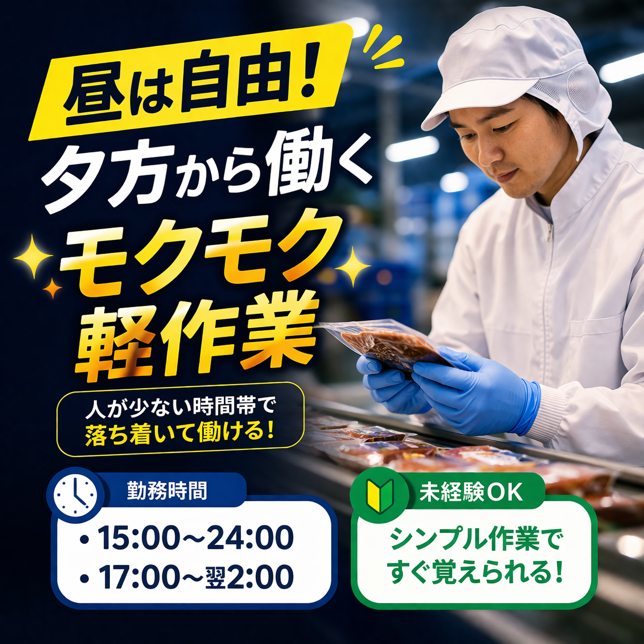 - 「昼は自由」夕方から働くモクモク軽作業|未経験OK